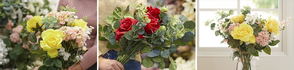 - Artificial flowers usually have a wire in the stem, so you can use this to bend the flower heads into position if needed. A few different angles will give your bouquet a more natural look.