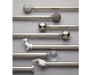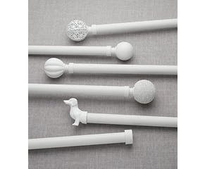 Finish off your curtains with our stylish range of tracks, poles and fixtures. Constructed from a range of high-quality materials including metal, wood and plastic, these useful products will help to frame your windows beautifully. Complement your traditional décor with the antiquated finish of our brass curtain poles, add a sophisticated modern look with the metallic gleam of our chrome curtain poles or, for universal appeal, try the charming natural finish of a wooden curtain pole. In addition to the pole itself, an attractive finial can make the perfect finishing touch to any room. Choose from our ornately crafted finials, stunning glass finials and charming ball finials. For a snug addition to your window space, our extendable curtain poles will save you the trouble of trimming for a customised fit.