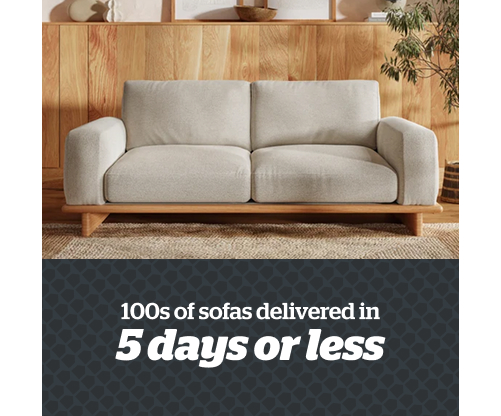 Shop sofas finished in your favourite fabric, or styles ready to be delivered STAT