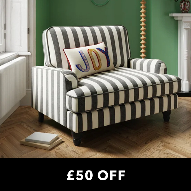 That’s the beauty of shopping online at Dunelm. Everything is there in front of you, and you can compare sofas, chairs and other furniture items with each other and work out if they go well together. Use our photos of laid out rooms to inspire you, and the search won’t be difficult at all.c