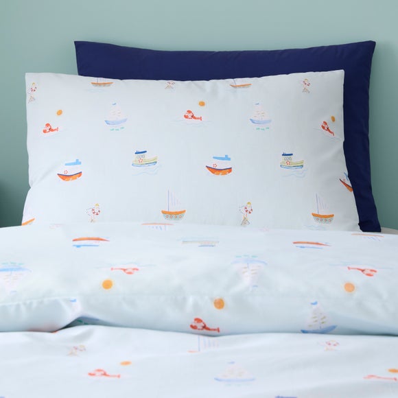Embroidered Boats Cotton Quilt Cover and Pillowcase Set