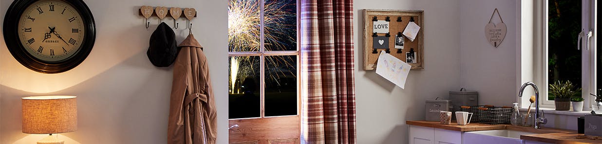 Clear your coat hooks so everyone can lose their outer layers asap, make space for shoes to be placed, and hang a thermal curtain over your door so once you’re in you can draw it across to keep your home cosy.