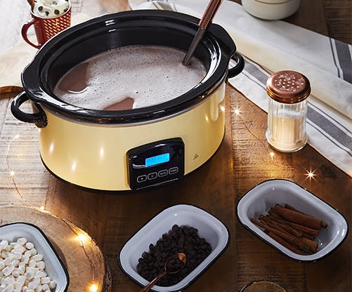 If you’re having people over, it’s far easier to let them help themselves to drinks, so we recommend making up a batch of your finest hot choc and keeping it in your slow cooker so it’s always ready to warm hands and tantalise taste buds.