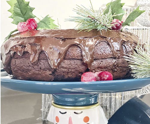 Chloe Dixon from Cakeawaycancer has gifted us with the ultimate chocolatey treat in the form of a Bundt cake recipe. This classic wreath-shaped cake uses lots of kitchen staples, making it the perfect treat to quickly whip up in the lead up to Christmas. Topped with luxuriously rich chocolate ganache, you might even find yourself sneaking away a second slice. Don’t worry, it’ll be our little secret!