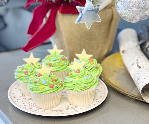 - Pipe the buttercream onto the cool cupcakes (you could even try swirling it up to look like a Christmas tree)