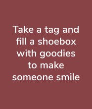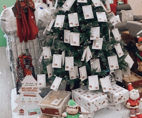 To get started, all you need is a tag from a tree in-store and an empty shoebox. Each tag has some information about the person your gifts will be given to, including their age and what types of things they’d love to receive. Pop your goodies into your box and return it to store before December 11th so we can sanitise them, wrap them, and deliver them to our local Care Homes, Primary Schools and Refuges.