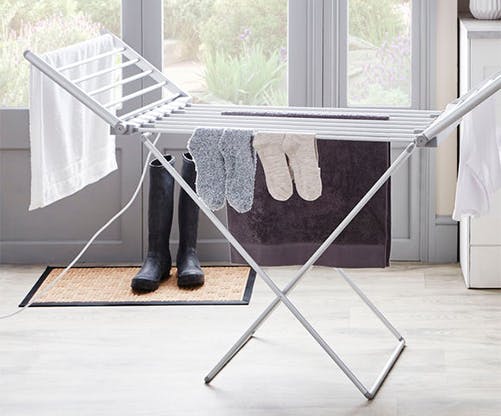 If it’s wet and miserable outside you might be finding it tricky to get your washing dry on the outside line or rotary airer, not mention the mess of walking wet muddy footprints inside. Our heated airers are a great alternative to both the hassle of line drying and the cost of tumble drying. Instead they let you air clothes naturally in your utility or spare room like on a standard airer but with a built in heating element, that warms and dries your washing, both cost effective and easy to run.