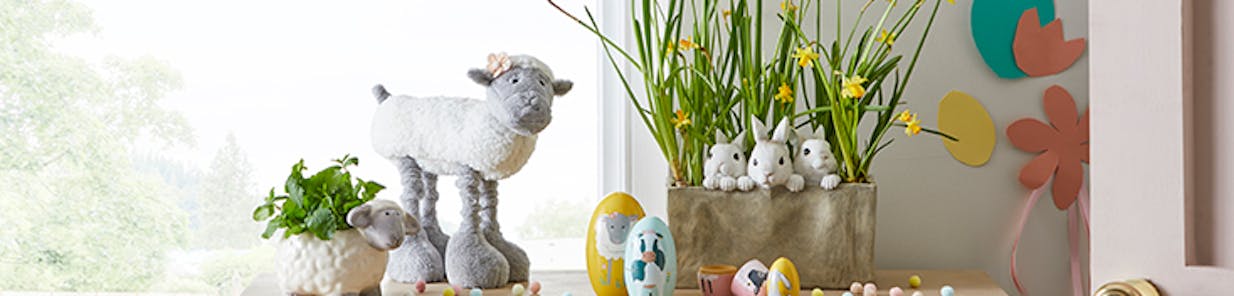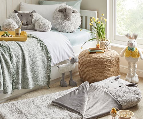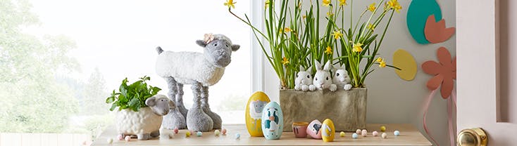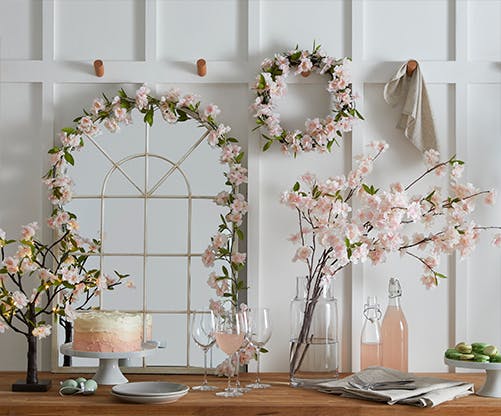 Flowers, flowers everywhere, but not all need a drop to drink. We have a blooming good choice of faux flowers to bring spring right into your home whether you’re popping them in a vase, revamping a mirror or dotting them about. Wreaths like our new beaming yellow Forsythia design will not only add a pop of spring to wherever they’re hung, but these flowery crowns are perfect for Easter too. Spruce up a surface with one of our beautiful blossom trees and to add an egg-cellent touch, get the kids involved in decorating them with our Easter ornaments from cute chicks to pastel eggs. Your Easter home refresh doesn’t have to stop here either - create a comfy corner with our soft throws and plump farm animal cushions.