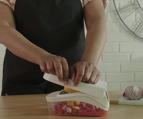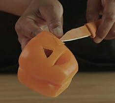 1. Take an orange pepper and carefully cut the top off, and remove the insides.
