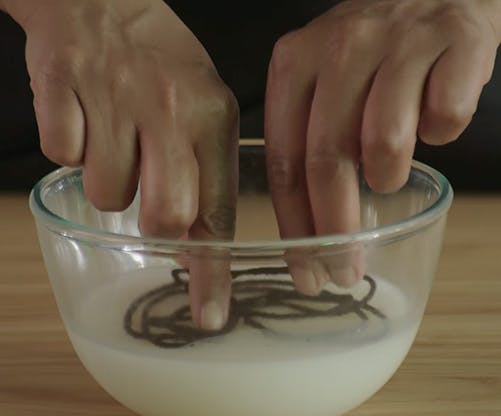 1. Take a bowl and add equal parts PVA and water and mix until combined.
