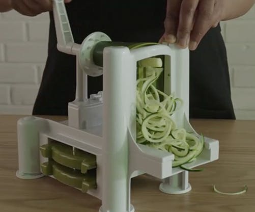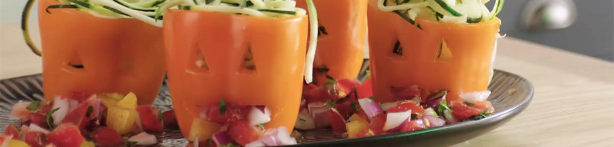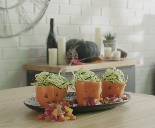 3. Spiralize some courgette and place inside the pepper, letting some spill over the top.