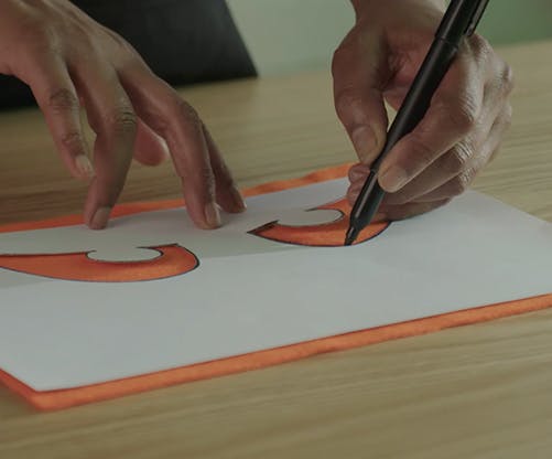 3. Make an eye stencil from card, and use this to mark the eye shape onto some felt.