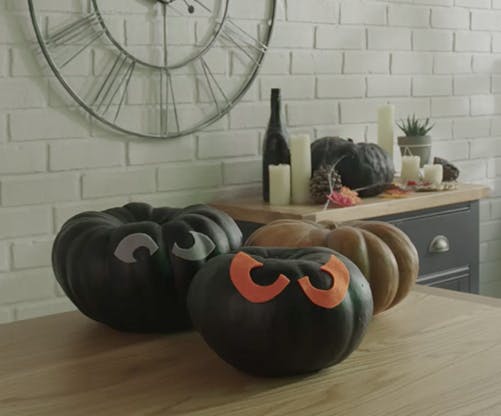 5. Apply PVA glue to the back of the eyes and glue to your pumpkin.