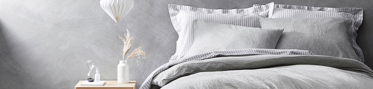 The crisp, clean mix of these two 100% cotton bedding ranges are a breath of fresh air and will create a calming atmosphere for you to drift off to sleep in. Snuggling up into cotton makes for a rejuvenating experience and not only is the fabric soft to the touch, but it is also breathable to help keep you comfortable the whole night through. The cool white of both ranges matches perfectly with our new Ragen cotton muslin accessories that come in modern grey and layer up to create a textured and inviting bed and because this combo is so versatile and easy to style, they’re compatible with a wide variety of other bedding and bedroom accessories from decor to curtains.