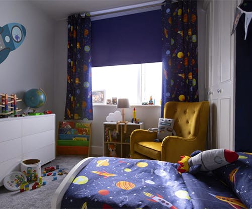 The Umeh’s Elijah (or Illy as he’s known in the family) is 3 years old, and he’s already begun his interior design career by making sure his room is a celebration of rockets and space. While the colourful theme is a lot of fun for him, it was also a key element in helping him move into a new, bigger bedroom.