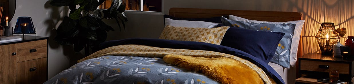Add to your pillow pile with some chunky cushions of different sizes in luscious fabric finishes - think soft cotton, rich velvet, faux fur and Teddy Bear textures - they're practical for sitting up in bed to read (or stream, or scroll) and you'll be able to move them around for maximum comfort. Then accessories practically and beautifully with a big, warm blanket. Coordinate your colours and try to go for something classic so you don't suddenly go off it. Alternatively, if you find yourself in a décor slump and want to break out comfortably, choose something a bit different to your norm to mix up your look without committing to a whole new bedding set. Keep a second throw to hand in case you find yourself in need (they're also good to swish around your shoulders if you need to pop the kettle on).