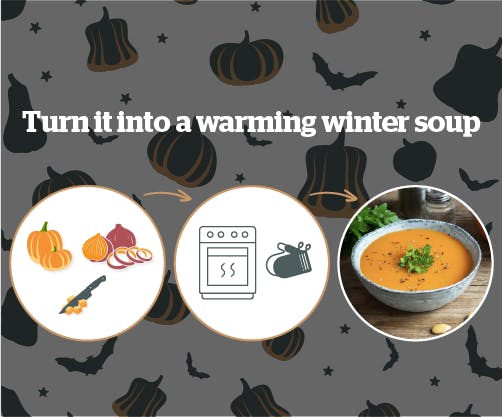 If your pumpkin is still looking fresh, roughly chop it up with a large onion, bake in the oven until soft, then blend with vegetable stock and a pinch of sage for asoupereasy meal.