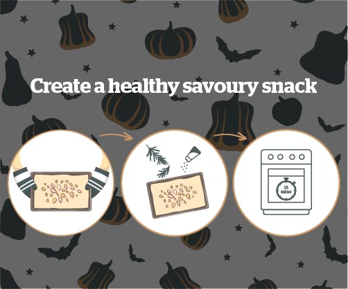 Wash and dry the seeds, then spread them on a baking tray. Season with a little salt, pepper and rosemary, and bake on a low heat for 15 minutes until they are lightly toasted.