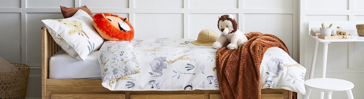 New in for Autumn/Winter is our Safari Nursery range, and if the idea of toy animal heads caught your interest, we’re pretty sure the rest of the range will be right up your street. The bedding is printed with seriously cute safari animals including giraffes, lions, elephants, and vibrant, exotic plant details too. In spite of the wild animals galloping over the surface, the base bedding is fairly neutral, so can easily be teamed with brighter or lighter colours depending on your taste. Choose vibrant orange to pull out the lion motif or go for sandy tones to complement the giraffe.