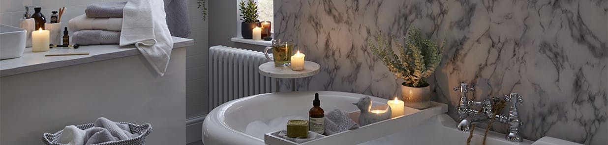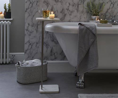 In terms of making the overall experience restful and restorative, maybe think about some small stylish makeovers to add the kind of effortlessly chic elements you find in the best hotels and spas. Our marble bathroom range is a great place to start, along with piles of plush new towels in easy to live with neutrals. Let textures triumph over pattern here and keep the palette soft and natural.