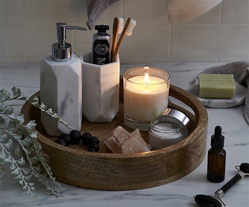 Take a moment to really think about what you want from your pampering me-time and gather everything you might need around you in a beautifully curated bathroom. Let’s be honest, no-one wants to have to keep leaping out of the bath, every few minutes to grab a book or light a candle so consider a bath rack as a must. Before you run the water with a few bath salts or bubbles, style it with a good book, your favourite fruit tea and a heavenly candle for mood-lifting aroma that creates a fully immersive experience where all your senses are catered for. A tiny soap dish of chocolates? Don’t mind if I do!