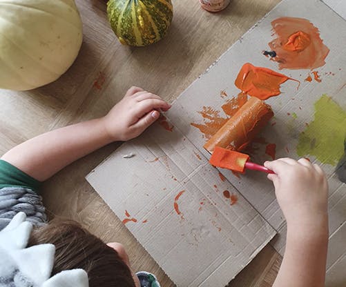 1. I cut the toilet roll into halves and set some orange paint out for Zac to paint them inside and out.