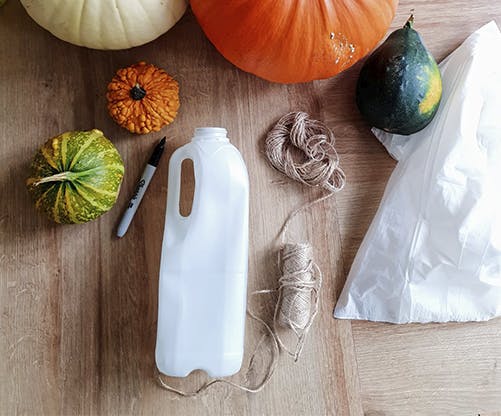 We get through so much milk in the week, so when I was washing the bottles for recycling, I thought that with the handles and lids these could hang as little ghosts.