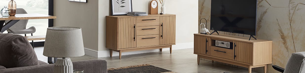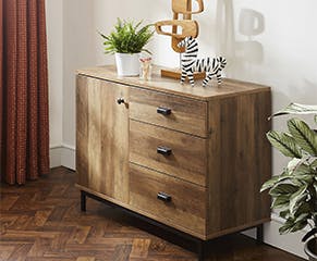 Stylish sideboards you say? Oh yes, sideboards are not only a fantastic way to show off your favourite framed snaps, potted plants and keep things out of reach of the kiddos, they’re perfect for discrete storage. We all have files filled with paperwork, extra plates and bowls or maybe even a pile of board games that need a home. Slotting them into a sideboard means they can be instantly hidden behind a door or in a drawer. If you haven’t got space for an additional piece of furniture, you could even swap out your current TV stand for a new design that features handy compartments for remote controls, DVDs and a handy hole at the back to disguise those pesky wires.
