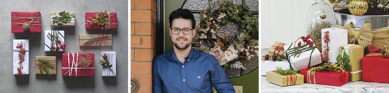 We just love Jonathon’s creative take as it’s so on trend with this year’s woodland/natural themes and it’s just perfect for bringing the outside in. All these natural embellishments are easy to find in your garden or a stroll around your local woods or park (which is also great for a Vitamin D boost). Simply gather a few foraged pieces and you’ll take our plain craft wrapping paper to another level by working bold, seasonal hues like red, green and white into super luxe wrapping.