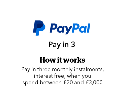 Paypal Pay in 3 is an unregulated credit agreement. Consider if your purchase is affordable and how you will repay. May make other borrowing more difficult or expensive. Subject to status and approval. 18+ UK residents only. See product terms for more details
