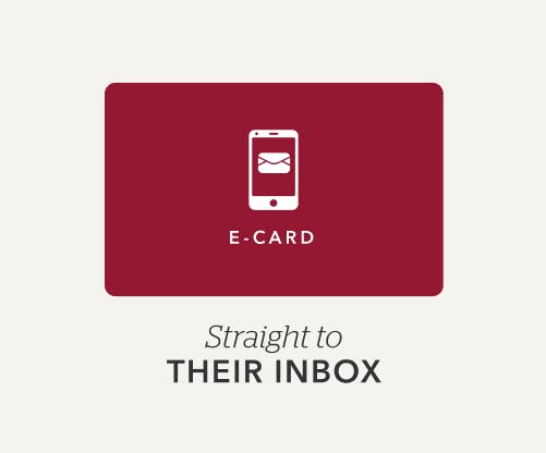 An e-Gift Card is digital, can only be purchased online and is sent out to the recipient via email. e-Gift Cards can be sent instantly for the recipient to start spending right away.