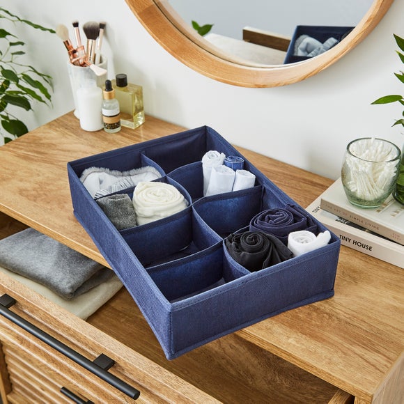 This 8 compartment drawer organiser is an ideal storage solution for everyone, helping to store anything you choose in an orderly fashion. It can also fold flat for easy storage when not in use. Available in a range of colours that will complement an array of home decors beautifully.