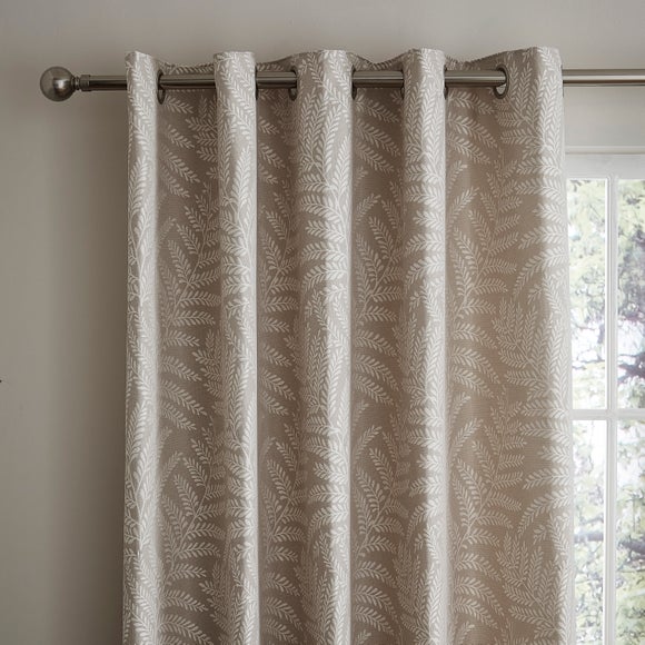 Crafted from woven fabric with a beautiful jacquard design featuring a fern leaf pattern, this pair of eyelet curtains are complete with a cream lining. Matching cushion and tiebacks are available.