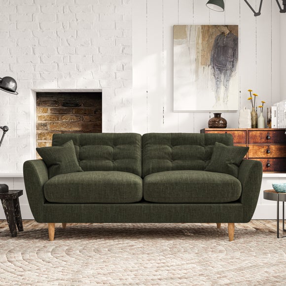 The Anders 3 Seater Sofa combines Scandinavian-inspired design with exceptional comfort, making it a stylish centrepiece for your living space. Featuring elegant tear-drop shaped arms, fibre-filled scatter cushions, and sleek hardwood legs available in two finishes, it offers a timeless aesthetic. The fibre-filled back cushions, detailed with a double-row button pull, add both support and a refined touch. Customise your seating experience with a choice between a supportive foam seat or the eco-friendly ‘Qualofill Blue’ fibre filling, crafted from 100% recycled polyester. With durable serpentine springs for added longevity, the Anders 3 Seater Sofa is as functional as it is elegant.