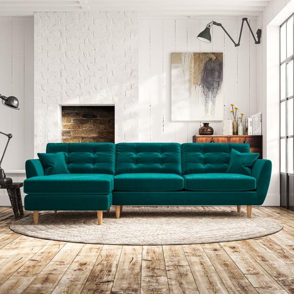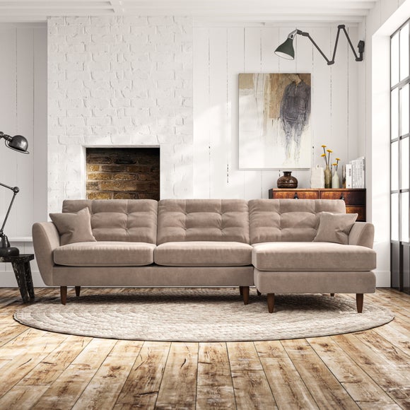 The Anders corner chaise sofa offers the perfect combination of Scandinavian-inspired design and spacious comfort. Its elegant tear-drop shaped arms, fibre-filled scatter cushions, and sleek hardwood legs in a choice of finishes create a modern yet timeless look. Designed for versatility, the corner chaise provides ample room to stretch out and relax, while the fibre-filled back cushions, complete with a stylish double-row button pull detail, ensure both comfort and support. Customise your sofa with a choice of seating options: a supportive, low-maintenance foam seat or the ‘Qualofill Blue’ fibre seat.
