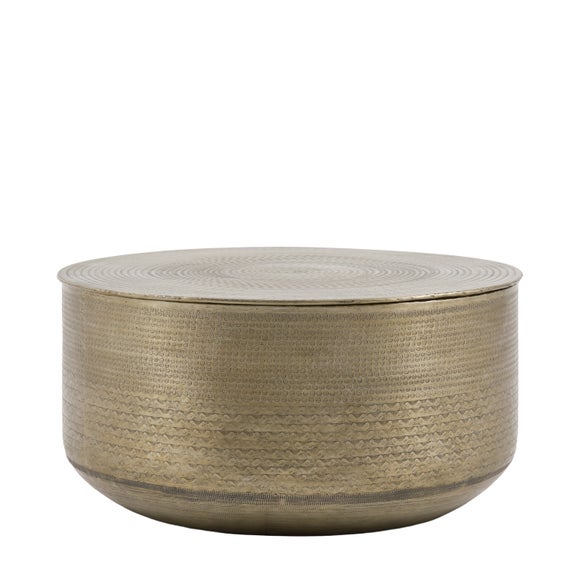 The Arcata coffee table blends artisanal texture with a clean, modern silhouette, featuring a hand‑pressed embossed metal design that makes a striking impression. The lift‑off top reveals discreet hidden storage, ideal for keeping living‑room essentials neatly tucked away while maintaining a stylish, streamlined look.