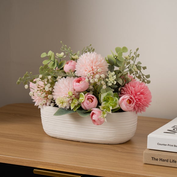Add a touch of timeless colour with this Artificial Pink Chrysanthemum arrangement in a ribbed ceramic pot. Featuring a mix of lifelike blooms, it brings soft colour and style to any space. Ideal for windowsills or as a striking table centrepiece, this arrangement offers effortless elegance without the need for care. Simply place and enjoy lasting beauty.