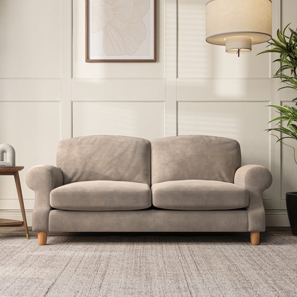 This sofa features a cut back scroll arm and elegant, gently arched back cushions, providing both style and comfort. The top-stitched detail on the arm front adds a touch of sophistication. Higher back cushions with generous fibre filling offer excellent support for your back and shoulders. Customise your comfort by choosing between a low-maintenance foam seat or the inviting ‘Qualofill Blue’ fibre seat, made from 100% recycled polyester. Built for longevity, it includes serpentine seat springs for added comfort. The turned hardwood legs, available in two finishes, are easy to fit.