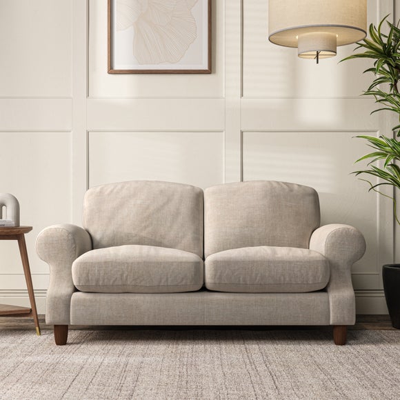 This sofa features a cut back scroll arm and elegant, gently arched back cushions, providing both style and comfort. The top-stitched detail on the arm front adds a touch of sophistication. Higher back cushions with generous fibre filling offer excellent support for your back and shoulders. Customise your comfort by choosing between a low-maintenance foam seat or the inviting ‘Qualofill Blue’ fibre seat, made from 100% recycled polyester. Built for longevity, it includes serpentine seat springs for added comfort. The turned hardwood legs, available in two finishes, are easy to fit.