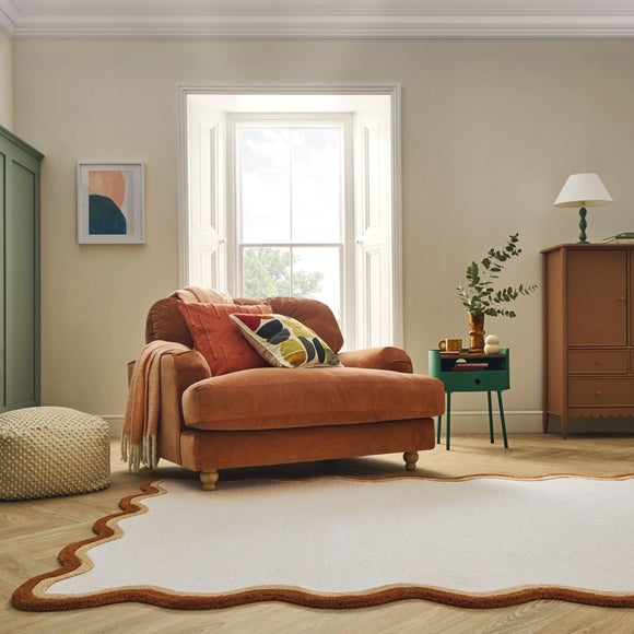 The Azure Wave Border Wool Rug combines striking design with luxurious texture. Handcrafted with a wool loop texture, this rug offers a soft, durable foundation, while the viscose border creates a stunning contrast to the textured wool. The distinctive wave border adds a dynamic touch, bringing a sense of movement and sophistication to your space. Azure seamlessly enhances any room, and is a great option for zoning living spaces.