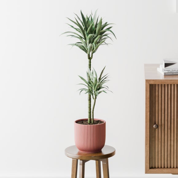 The Dracaena family are native to Africa, Central America and Asia. They form part of the asparagus family and they get their name from the Greek dracaena meaning female dragon, due to the red resin in its stems that is said to resemble dragon blood. This variety of Dragon Tree originated in the tropics of Africa. The striped dracaena has very distinctive blade like foliage with bright green leaves and white stripes. A fantastic plant for air purifying, perfect for homes and offices. Paired with a stylish, perfectly-fitting pot made from recycled plastic.