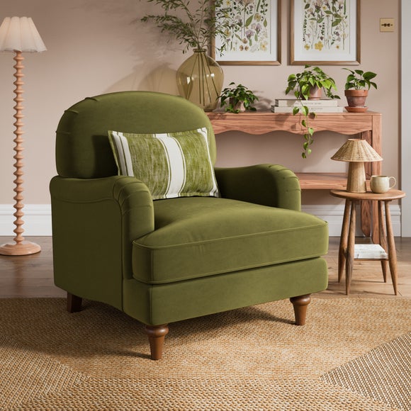 This beautiful armchair brings a fresh take on a classic favourite, now with an updated shape that feels even more inviting. The soft velvet fabric offers a soft, tactile finish. Its gently sculpted arms and refined silhouette make it a stylish fit for both traditional and modern interiors.