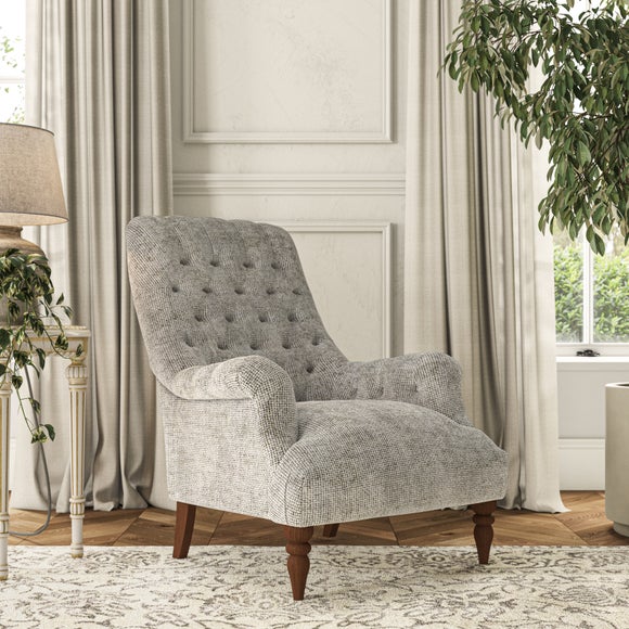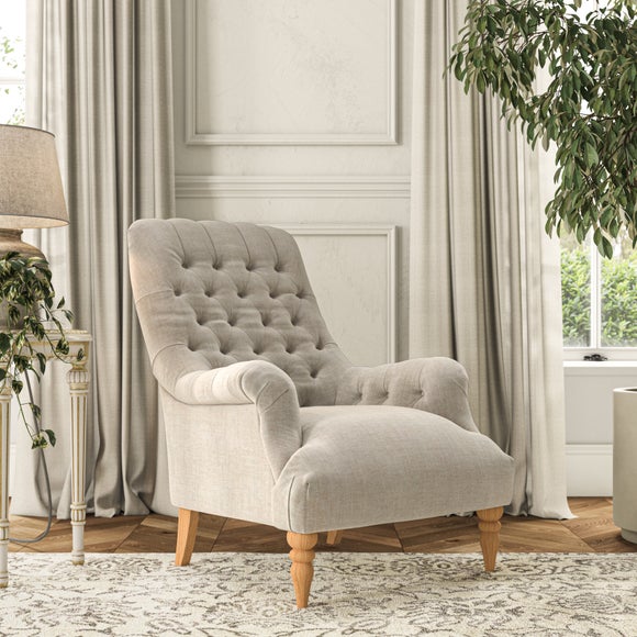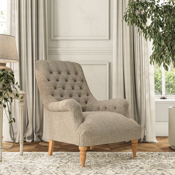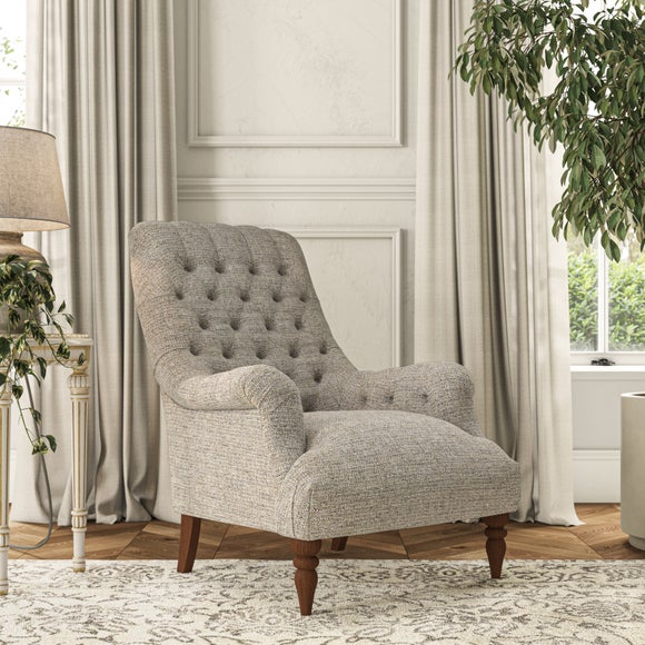 The Bibury Chair exudes timeless elegance with its graceful silhouette, making it a refined accent for any living space. Featuring a deep buttoned back, it effortlessly combines classic style with enduring comfort. The fixed seat ensures easy maintenance while delivering lasting support, making it perfect for daily use. The elegant show-wood feet, turned to the front, add a touch of sophistication and enduring charm to its design.