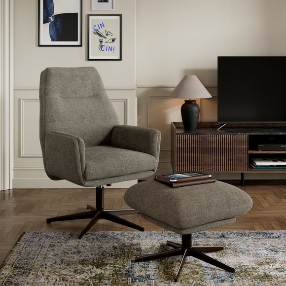 Settle in and unwind with the Brook Basketweave Swivel Recliner Chair and Footstool, designed for comfort and convenience. A simple lever beneath the seat allows you to effortlessly recline, creating the perfect position for relaxing. The supportive high back and cushioned seating offer a snug, comfortable feel, while the basketweave fabric adds a touch of modern texture. With its smooth swivel base, this chair keeps movement easy and natural. A great addition to any home looking for comfort without compromising on style.