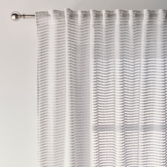 Light and refined, the Camilla Sheer Voile Panel blends functionality with contemporary elegance. Crafted from a high-quality linen and polyester blend, this panel features a subtle woven texture and a tonal stripe design that enhances natural light while offering a layer of privacy. The versatile multi-way header allows you to hang it as pleats, pencil pleats, or eyelets - perfectly adapting to any curtain pole or track system. Whether layered with heavier drapes or used alone in sunlit rooms, the Camilla panel is ideal for brightening interiors with its airy texture and effortlessly modern feel.