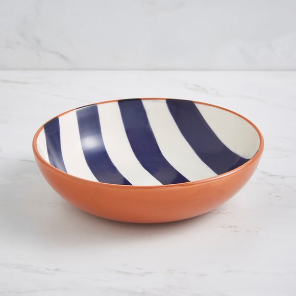 Bring a pop of colour to your table with this hand‑painted nibble bowl. The bold striped design adds a playful touch, while the smooth stoneware finish makes every serving feel special. At 13cm wide, it’s the perfect size for dips, olives, nuts or sweet treats. Mix and match your favourite colours to create a vibrant, eclectic set. A stylish little bowl that's perfect for everyday snacking.