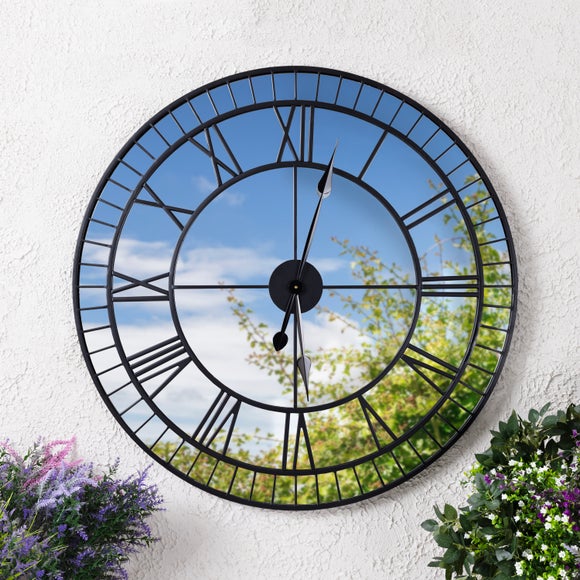 Add a touch of elegance with a mirrored clock that reflects light and style in any space. Its open skeleton design and classic roman numerals create a timeless look while the weather resistant frame makes it just as suitable for a garden wall as a kitchen or conservatory.