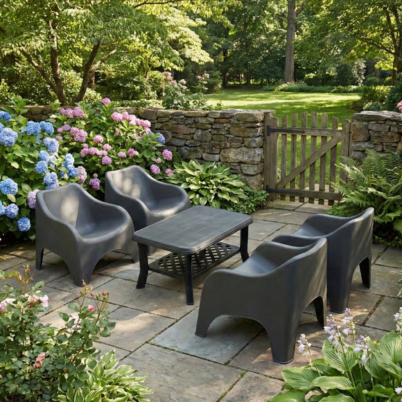 Transform your terrace into a vibrant social hub with the Clara coffee table and four Vernelle relax chairs. Finished in a striking, eye-catching blue, this set adds a bold pop of colour to any environment. Each chair is ergonomically designed for comfort and features a discreet drainage hole to ensure the seat stays dry after rain. Made from weather-resistant plastic, the set is incredibly low-maintenance and durable. The chairs are also stackable, making transport and storage effortless for seasonal transitions or social gatherings.