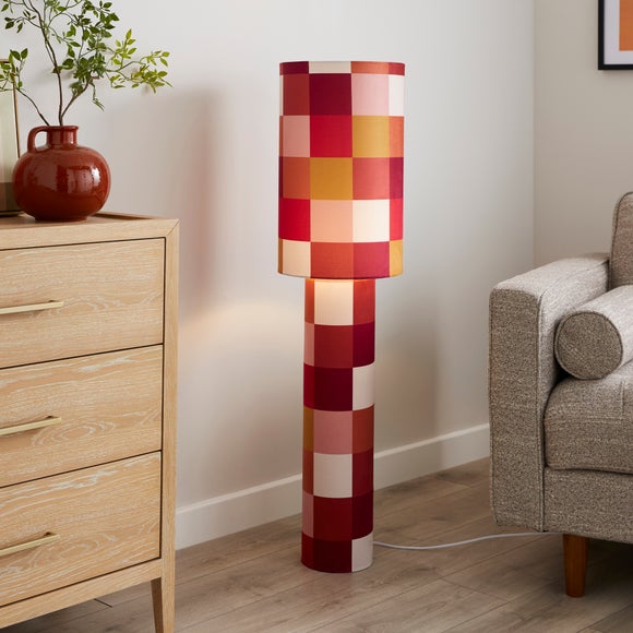 Bright, bold, and bursting with personality, the Clara Patchwork Fabric Floor Lamp brings a playful modern twist to any space. Its fabric shade pops with a lively checkerboard print, whilst the slim silhouette makes it perfect for smaller rooms.