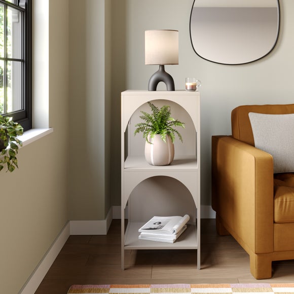The Clea arched shelving unit brings a soft, modern feel to any living space. Designed with a smooth curved top and clean vertical lines, it combines contemporary styling with practical storage. Multiple open shelves provide space for books, décor pieces and everyday essentials, while the arched silhouette adds a subtle architectural touch that lifts the look of the room.